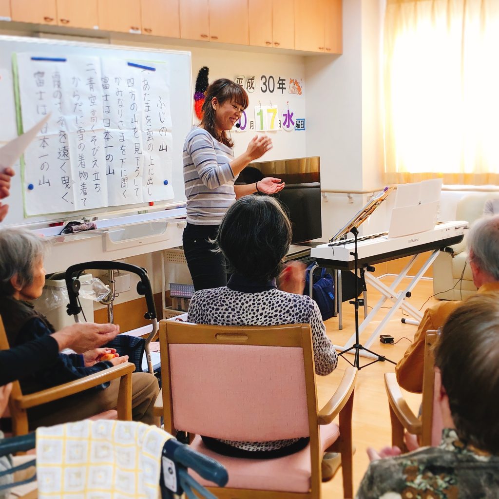 デイサービス、地域のふれあいサロン、公民館の自主講座、入居型介護施設等へお伺いいたします。ピアノがない施設でも可能です。また、介護職員やボランティアスタッフなどへの講演会も承っております。